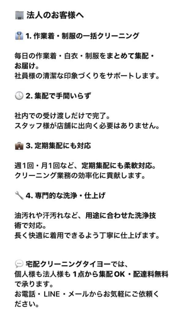 これらの要素がタイヨーの宅配クリーニングサービスの魅力です。