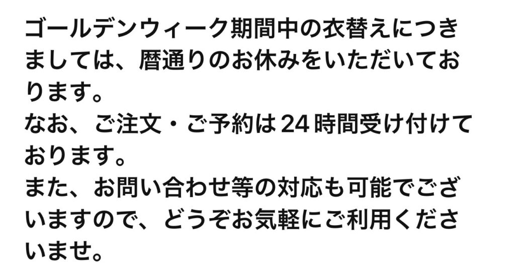 ・衣替えのご準備はゴールデンウィーク中もお気軽に