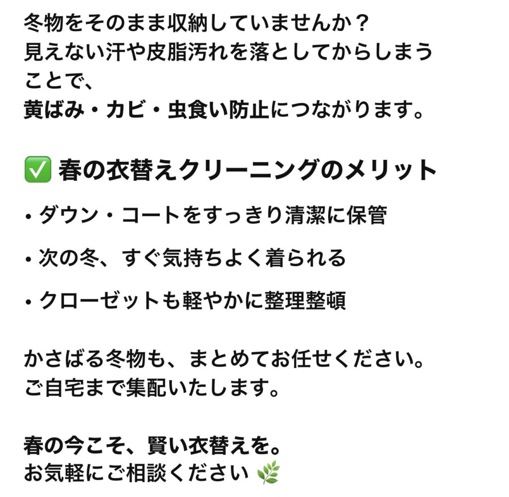 暖かくなってきました。衣替えの季節です。 宅配クリーニングタイヨー