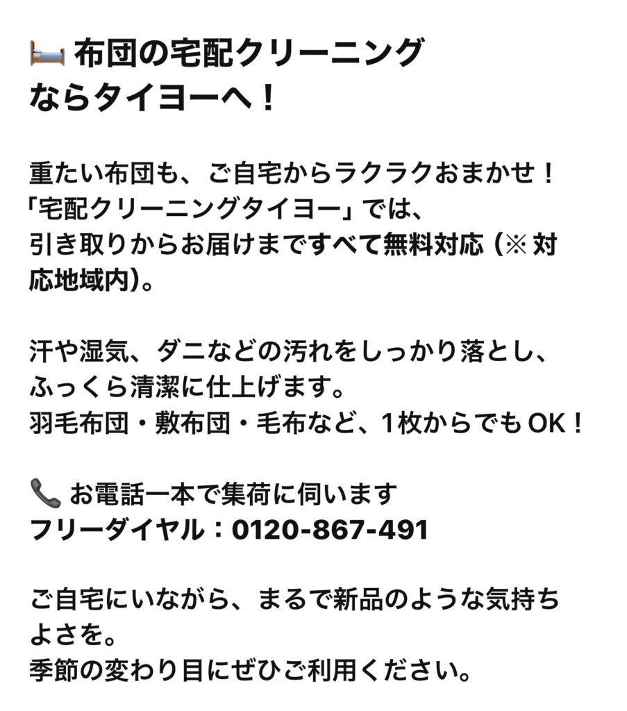 お問い合わせ先 tel:0120-86-7491 クリーニングタイヨー